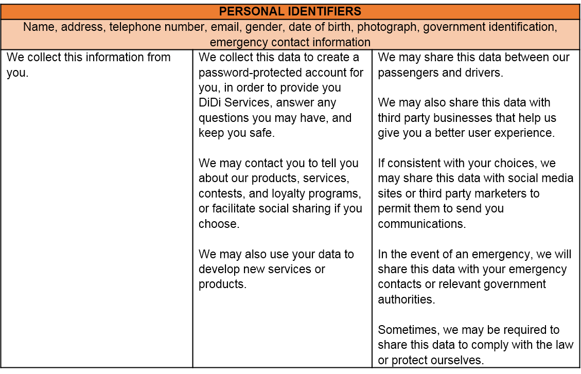 We respect and value your privacy. The purpose of this Policy is to provide you with a comprehensive description of our online and offline practices in the collection, use, and disclosure of your personal information, and the rights you have regarding your personal information. This Privacy Policy applies to the website, mobile application products, and services related to DiDi ride-hailing related services (collectively, “DiDi Services”), except for services explicitly announced to adopt independent privacy policies. In this Policy, the terms “DiDi,” “DiDi Group,” “company,” “us,” “we,” and “our” refer to DiDi Group and its affiliates and subsidiaries.