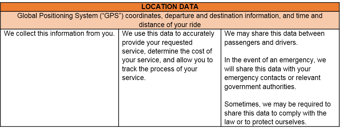 We will recognize and determine the countries and regions where you are using our service based on your geographical location, departure, and destination information. If DiDi does not provide DiDi Services in such countries and regions yet, we will timely inform you. You can also learn about where DiDi Services are provided via the announcement on our website (https://img0.didiglobal.com/static/luban_data/webapp-lang-list.html). In the countries and regions where DiDi Services are not yet available, we may only collect the information provided by you when you download our mobile application or create your user account, including your geographical location, the version of the app you use, your mobile phone number, and the identification number and serial number of your device.