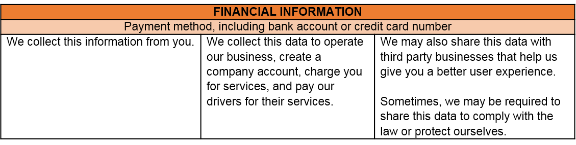 • Payment. You may correct or modify your payment methods, bank account number and other information through “Payment” of DiDi mobile application.